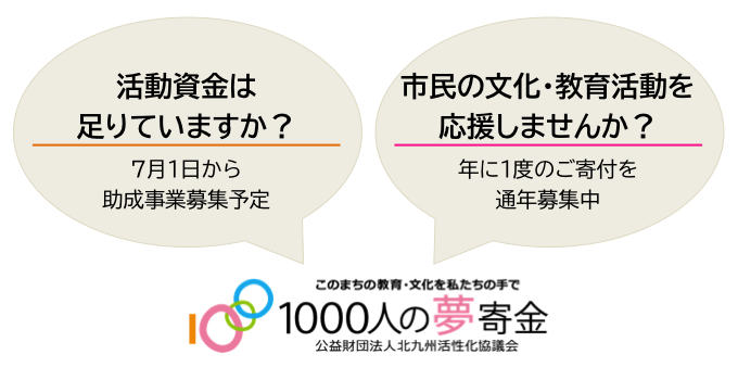 文化・芸術、教育・青少年育成事業に対して助成を行なっている1000人の夢寄金。今年も7月1日から助成募集をスタートする予定です。