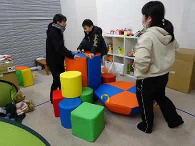 想を促すため、発達障害児童用の運動玩具や大型ブロックを購入支援をする教